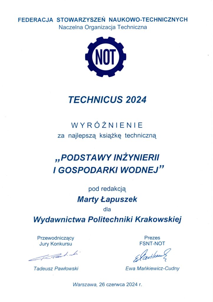 26 czerwca w Warszawskim Domu Technika w czasie posiedzenia Rady Krajowej Federacji Stowarzyszeń Naukowo-Technicznych-NOT po raz kolejny przyznano nagrody w konkursie TECHNICUS 2024. Jury konkursu pod przewodnictwem dra hab. inż. Tadeusza Pawłowskiego, wiceprezesa FSNT NOT, przyznało tytuły TECHNICUS 2024 w kategoriach „najlepsza książka szerząca wiedzę techniczną” oraz „najlepszy poradnik techniczny”.